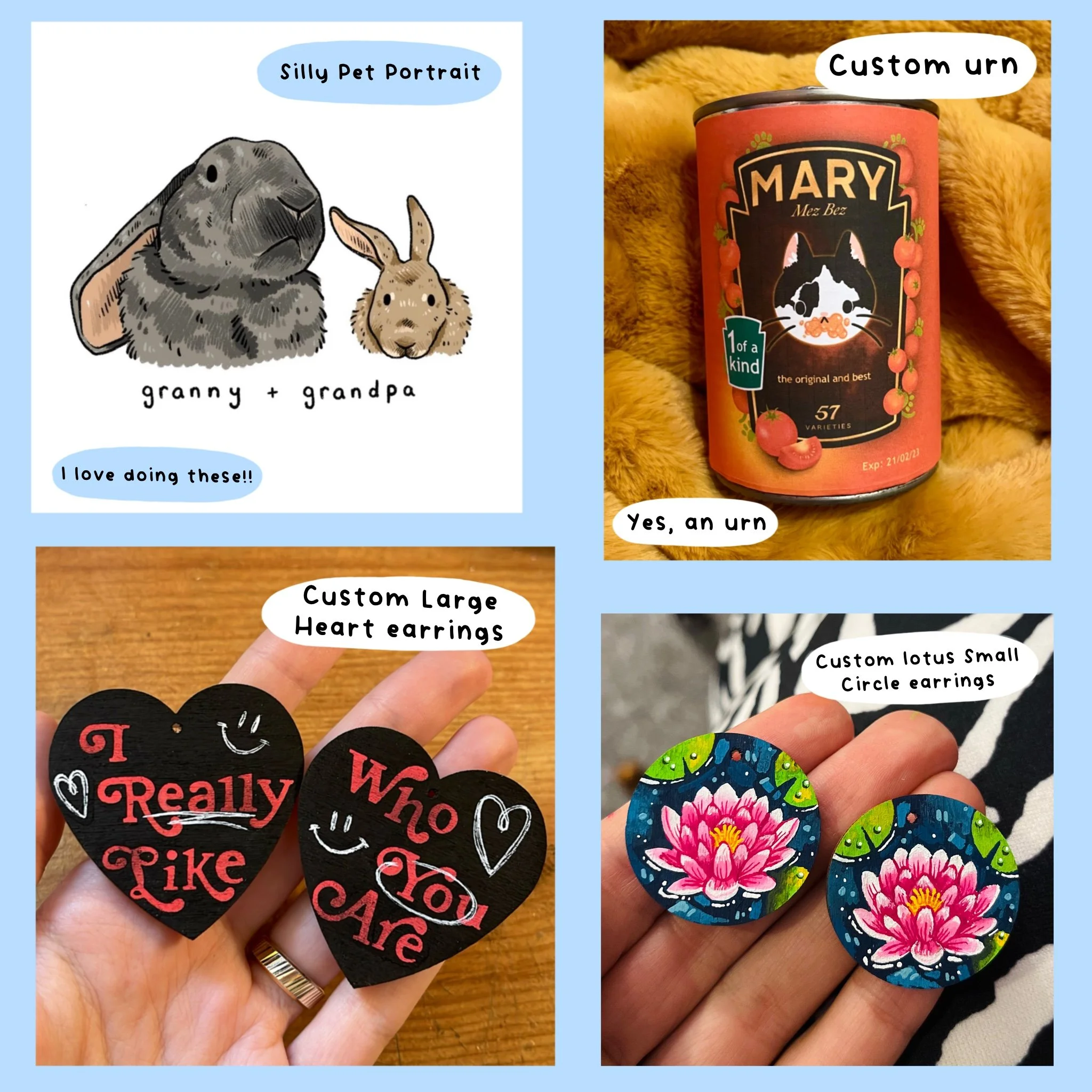 Just a few examples of my previous custom/commissioned work! If you’ve commissioned work from me before and are happy for me to add it to the gallery- Please let me know! Thank you all SO much for your support, I love making things with you!! :)