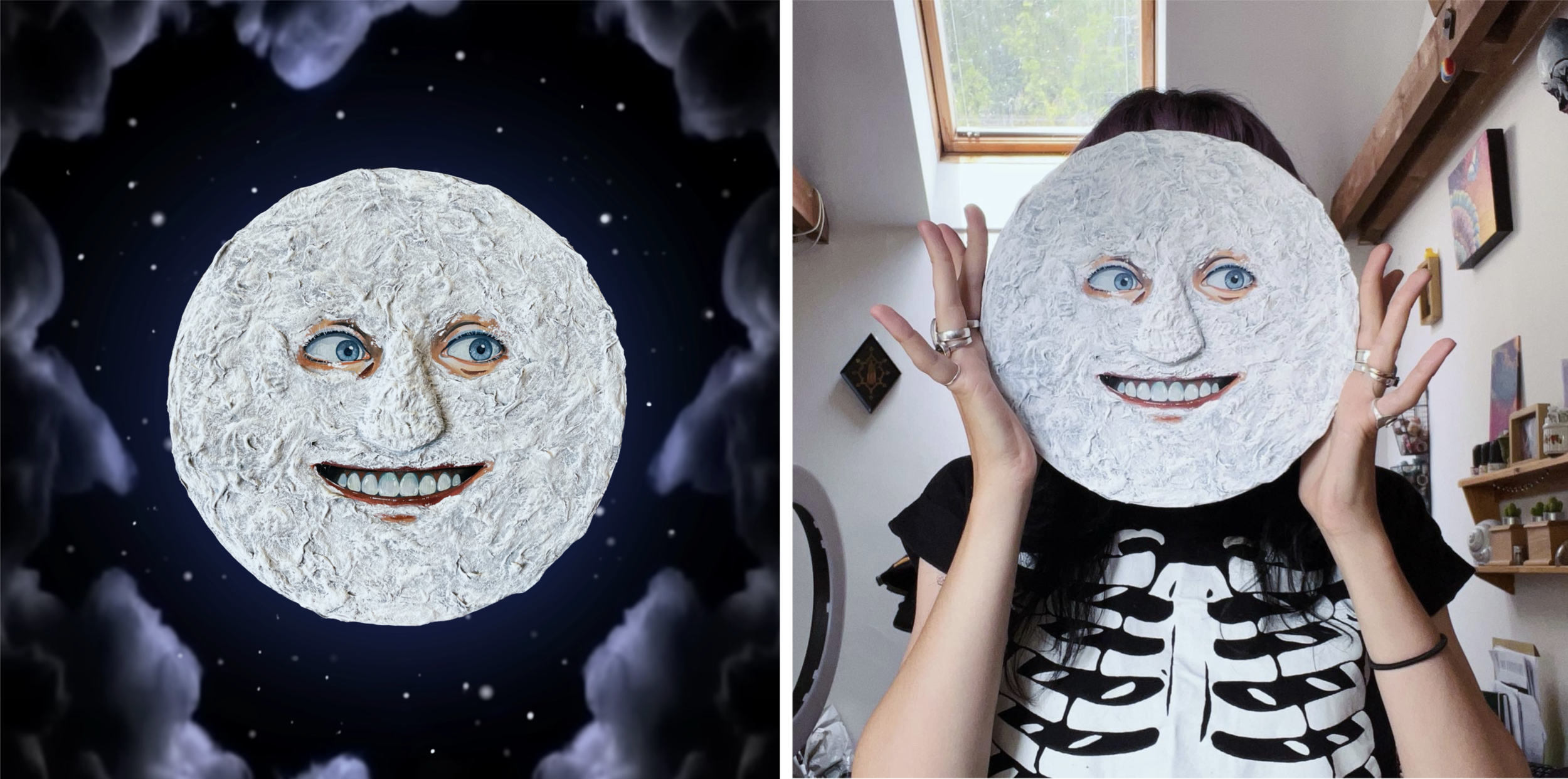 The Moon - The Mighty Boosh: July 2025. Wood board, cotton mache & acryla-gouache.